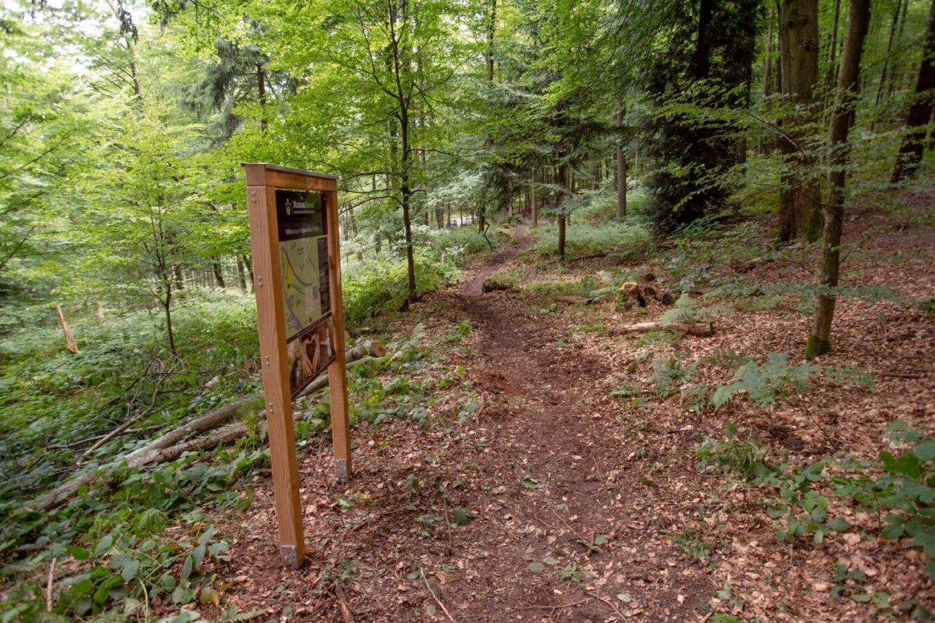 Von hier führt ein Waldpfad in wenigen Gehminuten in den Wald hinein.